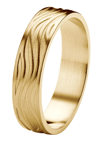 Rytmi-malliston Aalto on 5 mm leveä 585 keltakullasta valmistettu kihlasormus. Design Assi Arnimaa.