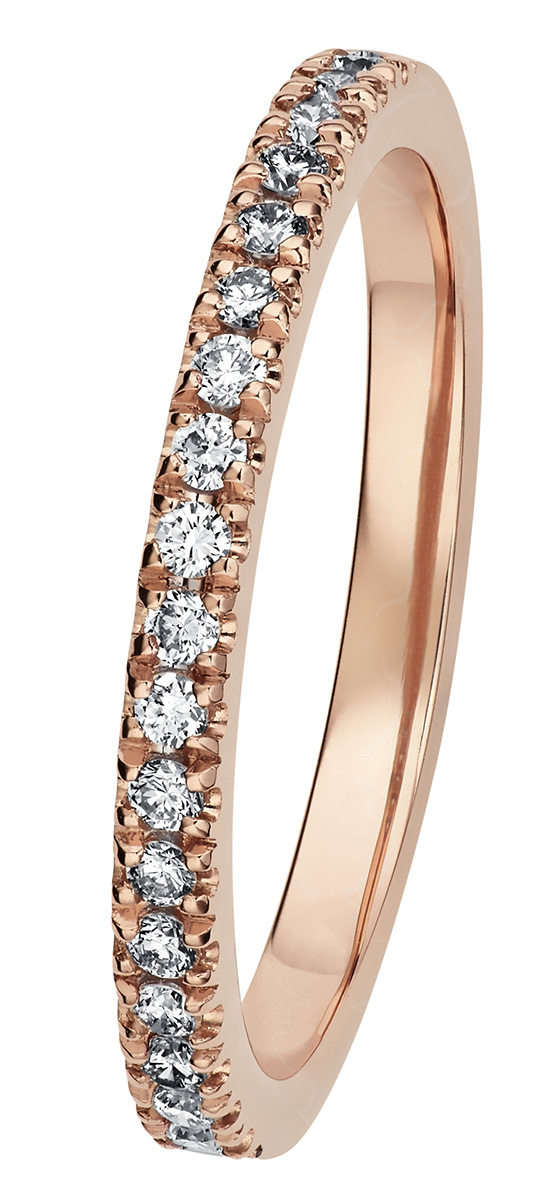 • Rohkea ja viettelevä Valerie on yksi rakastetuimmista Kohinoor-sormusmalleista. Klassinen rivisormus sopii käytettäväksi yksinään tai toisen sormuksen parina. Sopii Valerie-mallien 033-264-44 ja 033-263-44 vierelle, sillä niissä sormusrunkojen timanttirivistö on yhtä pitkä. Timantit yht. 0,18 ct H/SI. Design Sami Laatikainen